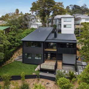 This steep site provided plenty of challenges in the build, but the end result is a dramatic profile for this home, nestled in an engaging landscape.